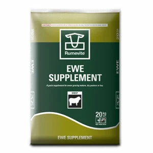 Rumevite Ewe Supplement should be fed in portions of 250g per 50kg with gradual portion increases over three weeks. One bag contains 20kg of the supplement.